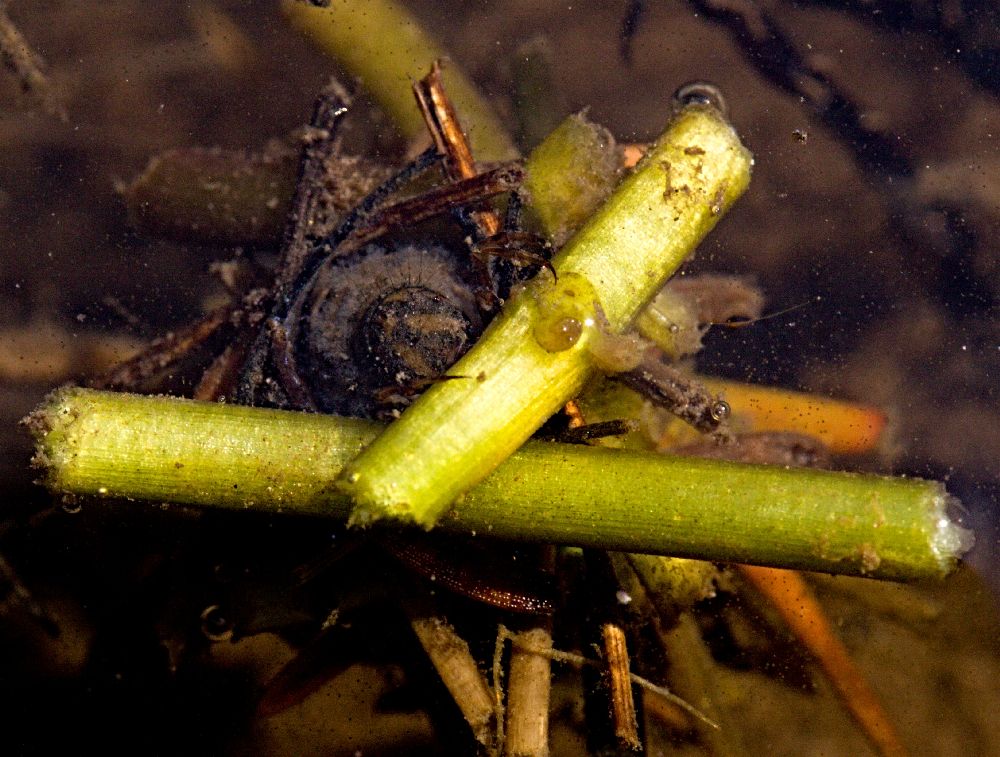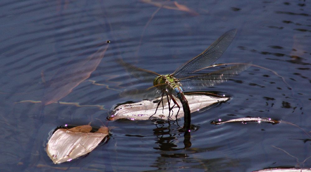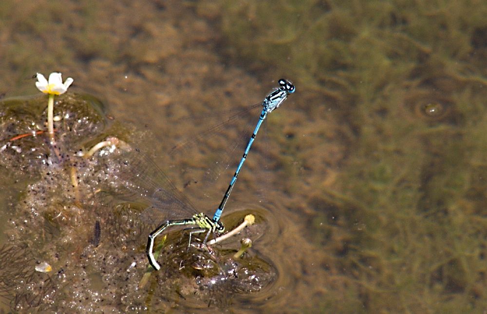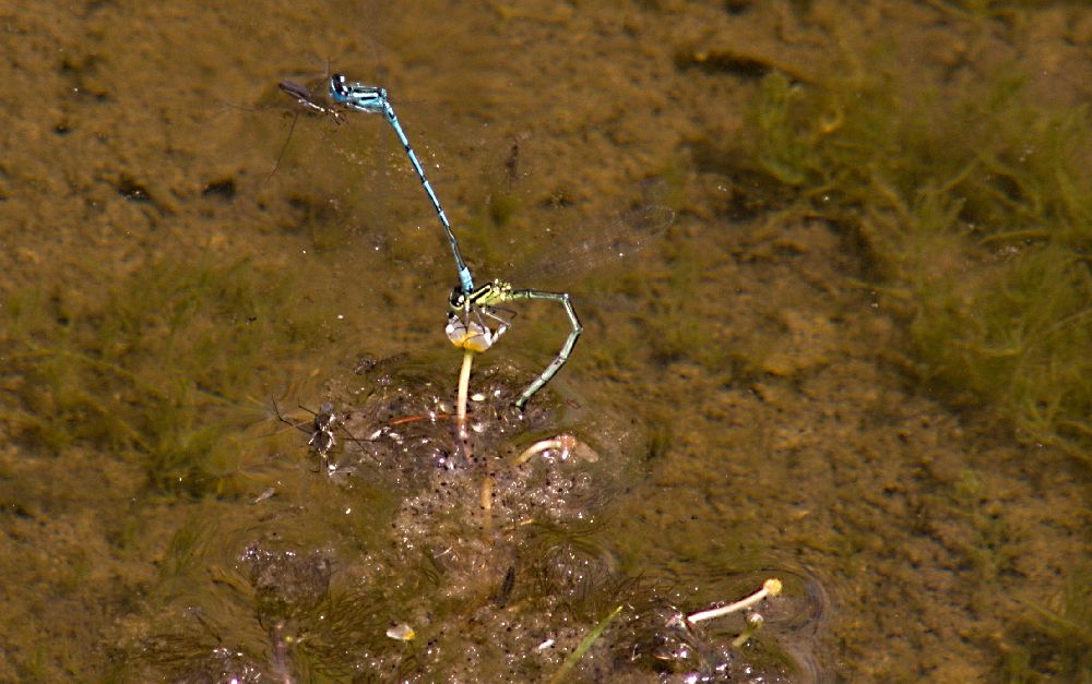 Šidlo modré - samička pri kladení vajíčok